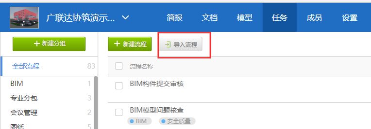 最后一个问题呢,也是很多用户很关注的,就是有流程模块可以复用,快速上手么。答案是肯定的,协筑上已经内置了100多钟常用的流程模板供,管理员可将适合本项目的流程模版进行导入,在原有流程模板的基础上进行修改。