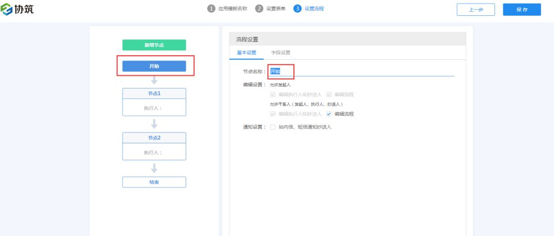 6、表单流程设置中,只有一个流程节点时不允许删除。