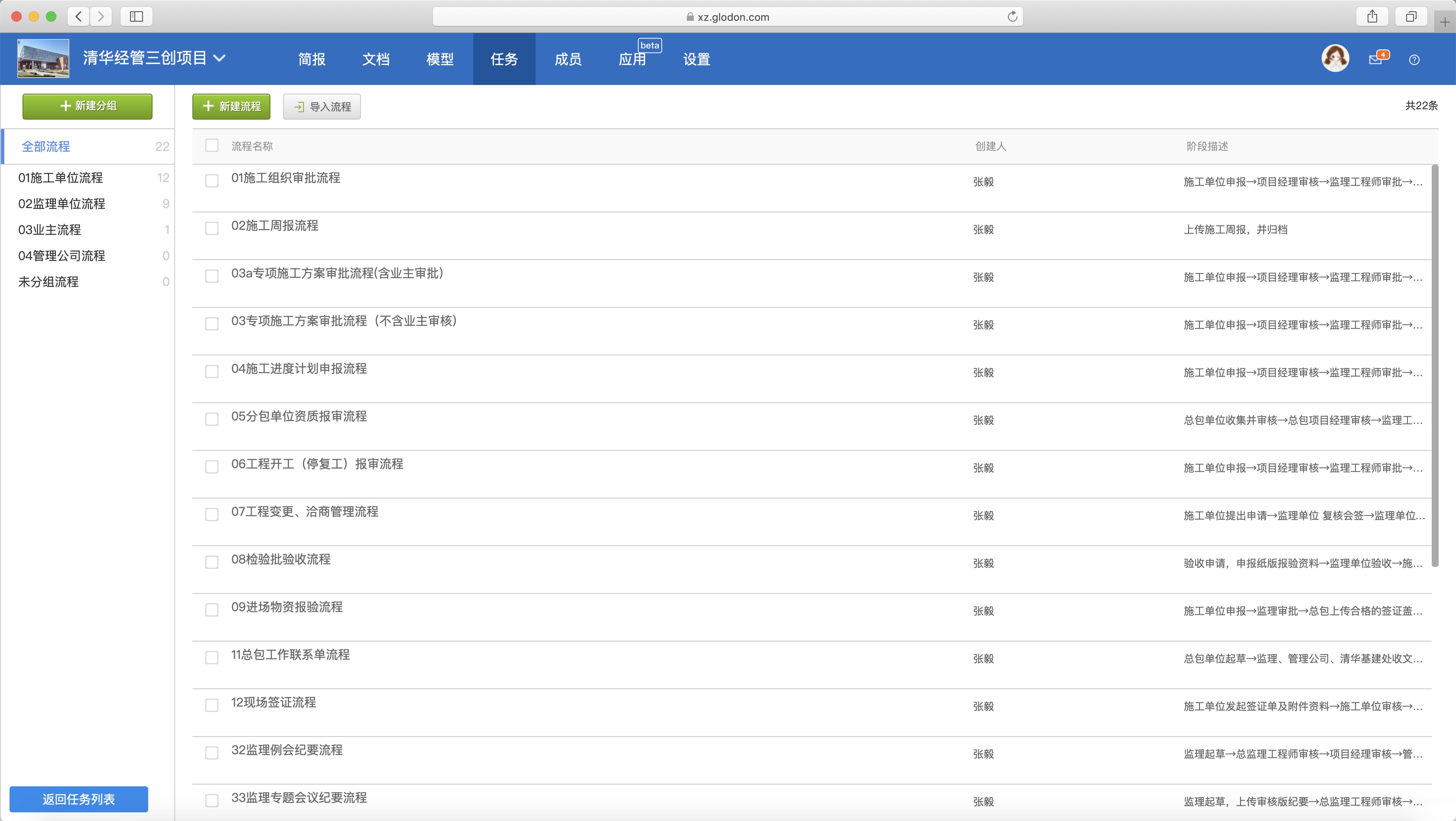 根据该项目涉及的各方及审批流程特点,结合协筑平台提供的自定义多样化流程模板设置功能,北京诺士诚将该项目涉及的流程分为四大类,编制了切实可行及全面的审批流模板,涵盖施工、监理、业主等各参建方审批流。针对每种流程特点,又分别设置了不同的流程阶段、流程干系人、流程编辑权限、流程归档路径等,从而统一规范了各方的审批流程。