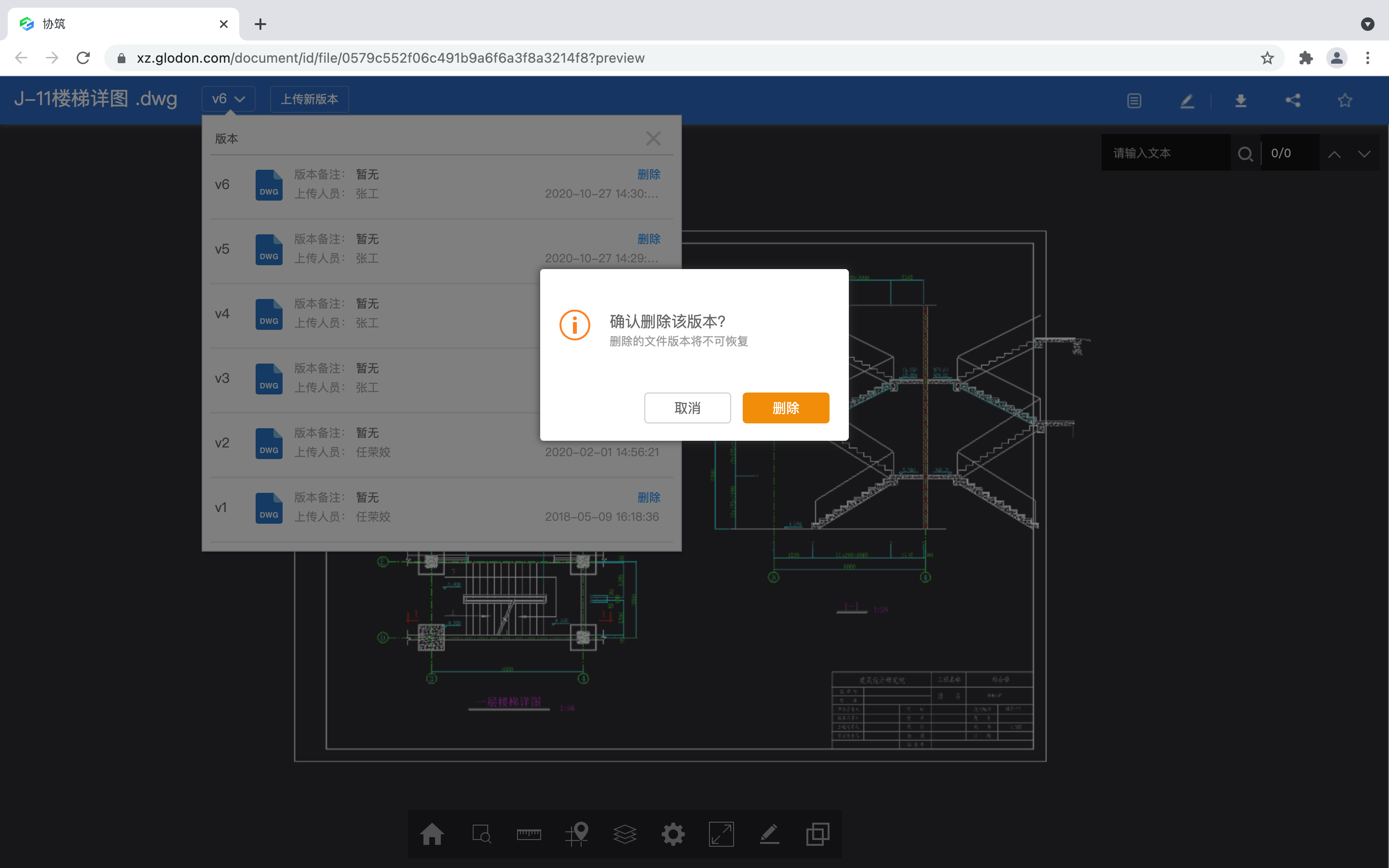 7月23日,协筑网页端,支持项目管理员删除文件版本。