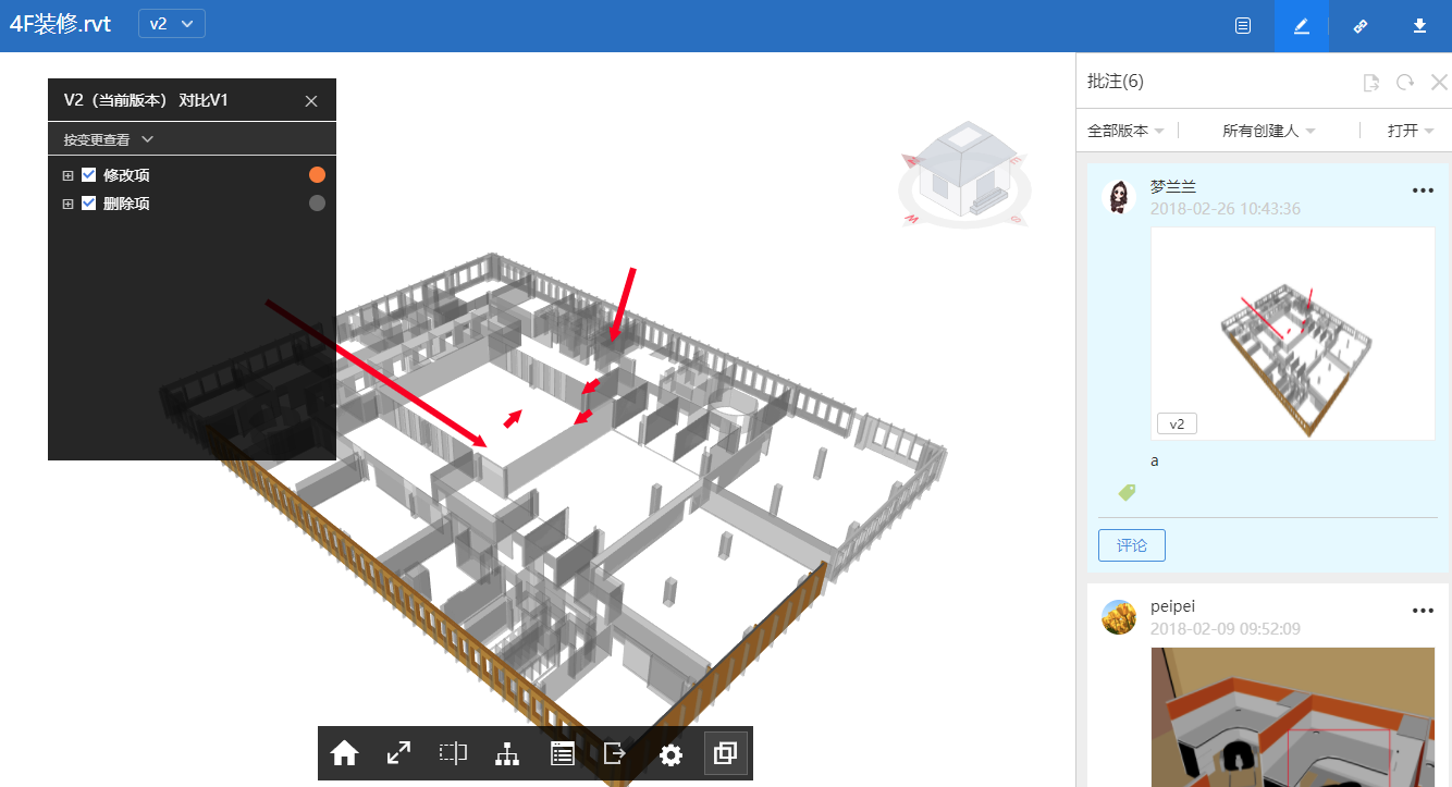 - 新增在模型版本对比模式下支持批注与回看。