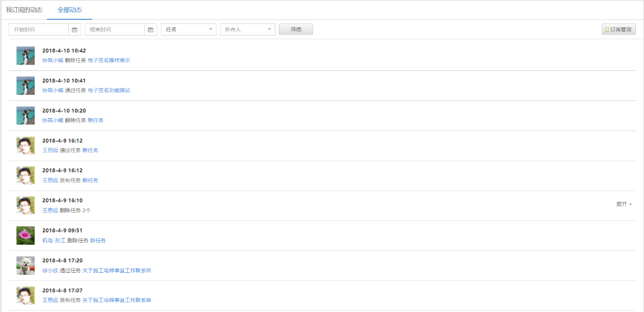 5. 新增任务相关的操作动态,便于追踪项目中与自己相关的任务操作记录。